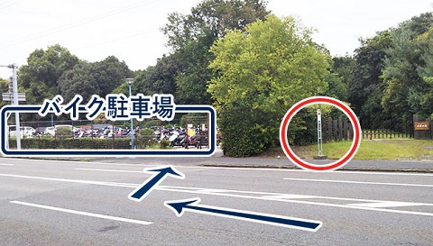 3.進行方向の右車線にあるバス停を過ぎたところに「バイク駐車場」へ