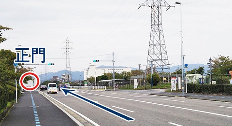 3. 右折後1つめの信号を越えてすぐ左折し、パナソニック工場の正門へ進む