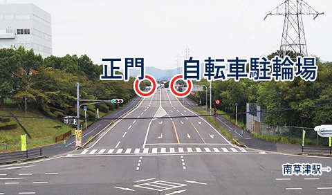 1.南草津駅方面から「野路中央」交差点を越え、さらに南へ進む